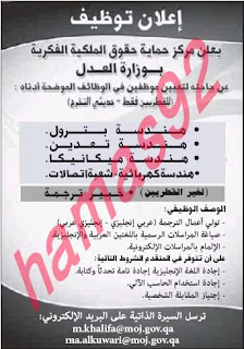 اعلان وظائف وزارة العدل - مركز حماية حقوق الملكية الفكرية