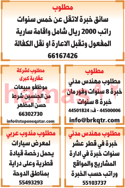 اعلانات وظائف صحف قطر اليوم الاربعاء ١٥ يوليو ٢٠١٥ .